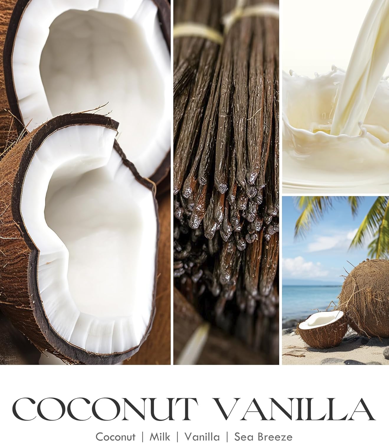 Pleasant scent, but don’t expect the room to be filled with either a vanilla or coconut scent.