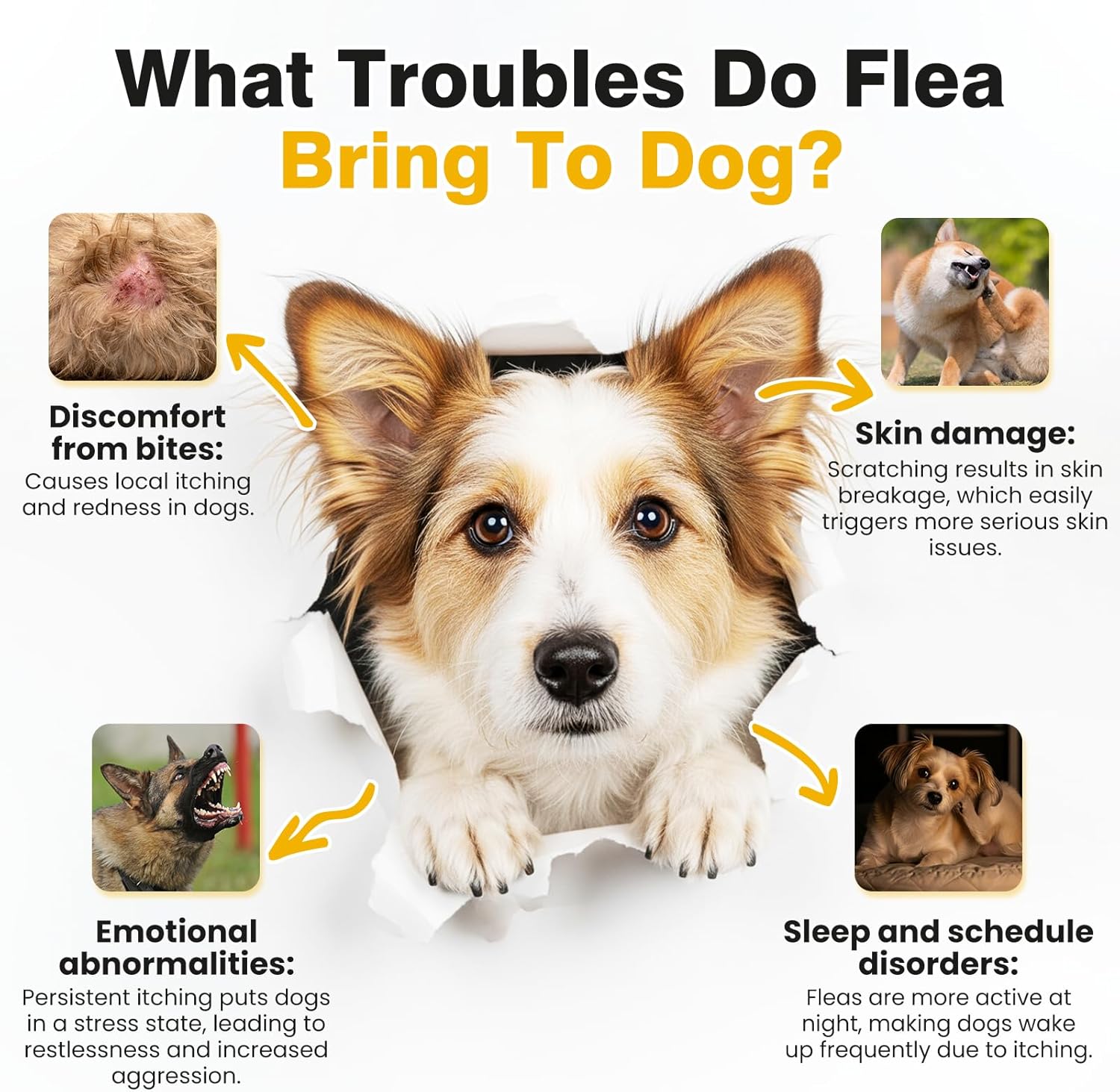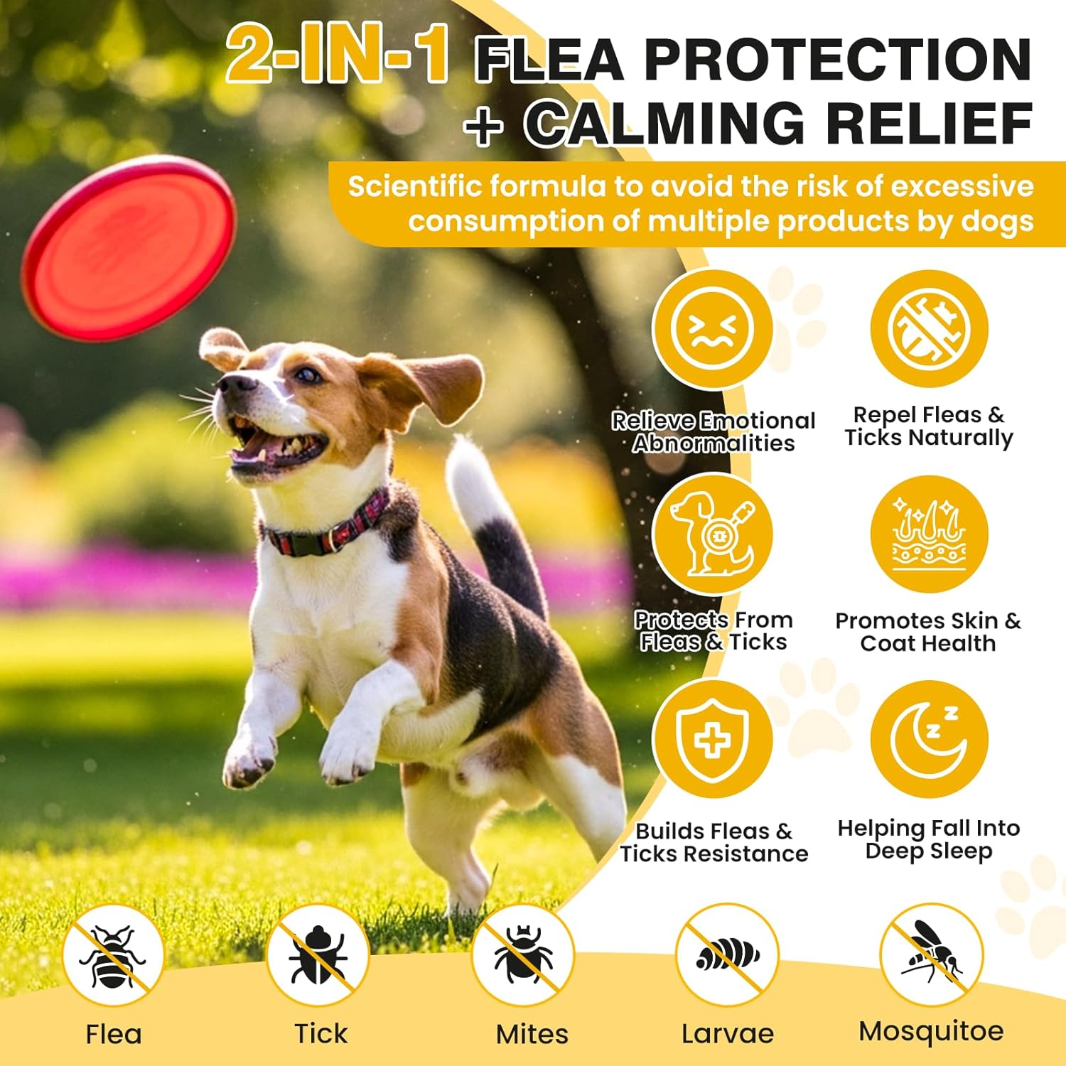 Dog flea and tick chewable offer exclusive dual action relief,providing “flea trouble + calming relief” support!Flea and tick chewables for dogs can not only help reduce the itching and discomfort caused by external fleas and ticks to dog,but also chewable flea and tick for dogs can relieve the irritability mood caused by bites – stress,anxiety,and insomnia.Dog flea chews provide multiple support at the same time,eliminating the risk of ingredient conflicts caused by taking multiple supplements